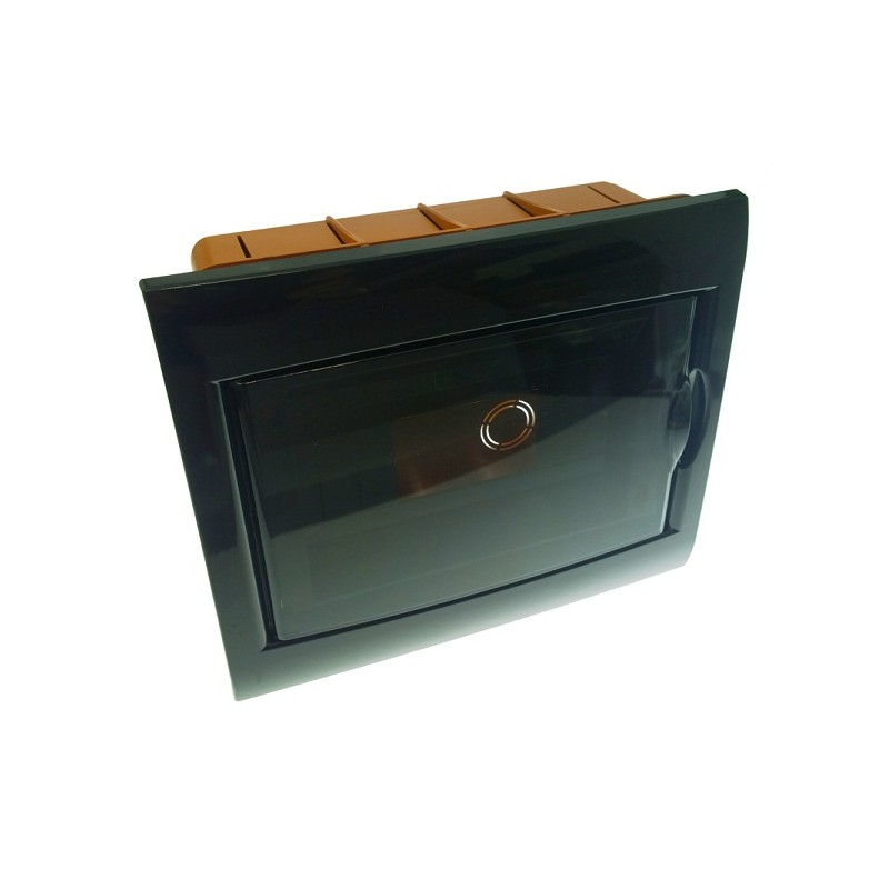 CENTRALINO INC. 8MOD. NERO/FUME' IN TECNOPOLIMERO CON PORTELLO FUME' E CORNICE COLORE NERO MIS. 240X194X80MM.Destinatario :