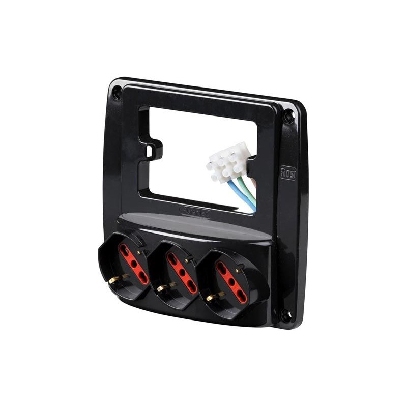 3 prese schuko + bipasso 16a. colore nero