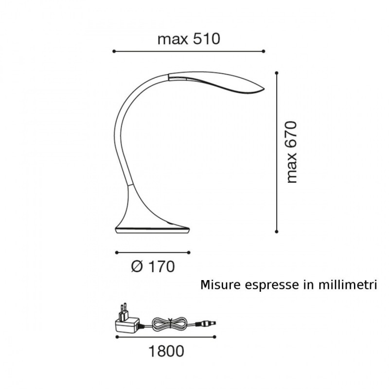 LAMPADA DA TAVOLO LED 4,5W BIANCO LUCIDO Tonalita' 3000k, con dimmerazione incorporata NunKi GeaDestinatario :