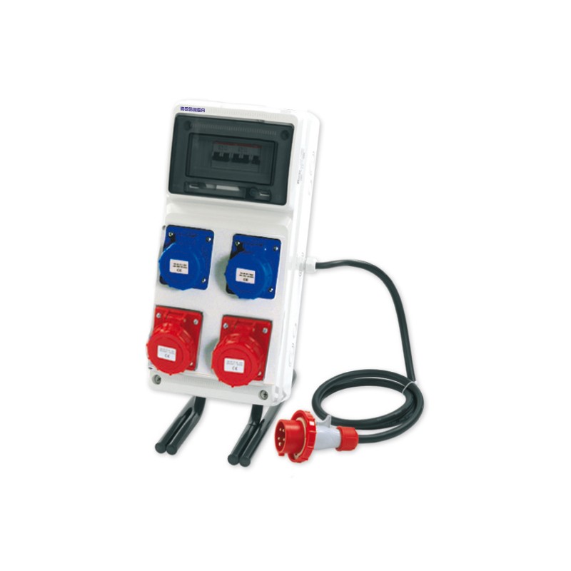 Q.ASC2PR.3P+T 380V 2P+T 16A230V IP67C/C. COMPOSTO DA 2 PRESE CEI 3P+T. 16A. IP67, + 2 PRESE CEI 2P+T. 16A. IP67, 1 DIFF. MAGN. 4P. 16A., CAVO DI ALIMENTAZIONE 5X2,5 CON SPINA CEI 3P.+N.+T., CON CAVALLETTO IN METALLO.Destinatario :