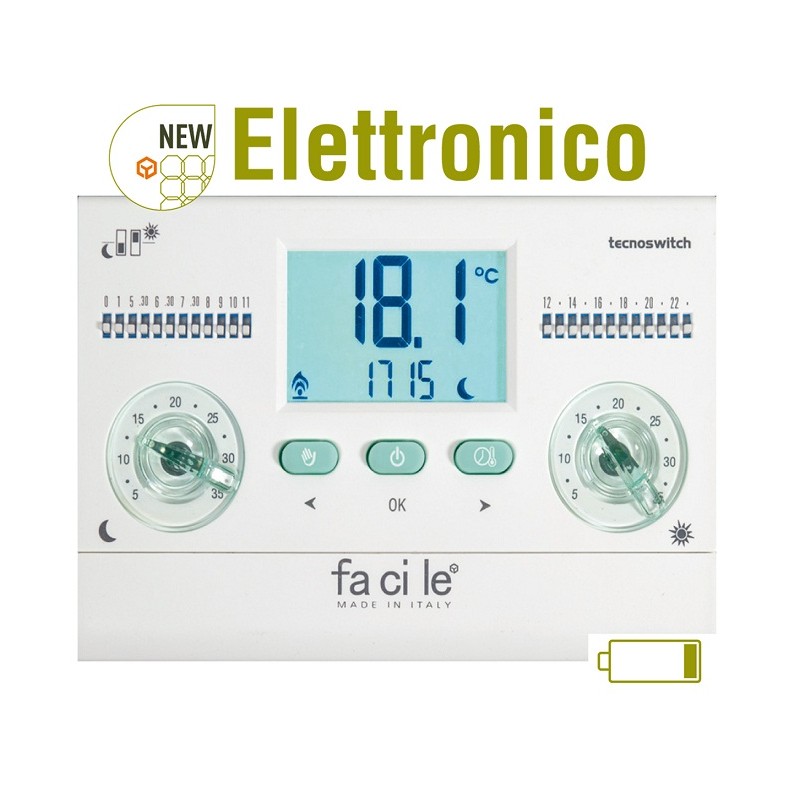 CRONOTERMOSTATO 'FACILE' DA PARETE B.CO Alimentazione 3V – 2x1.5V AA alkaline ( non incluse )Destinatario :